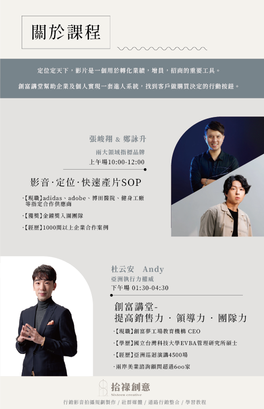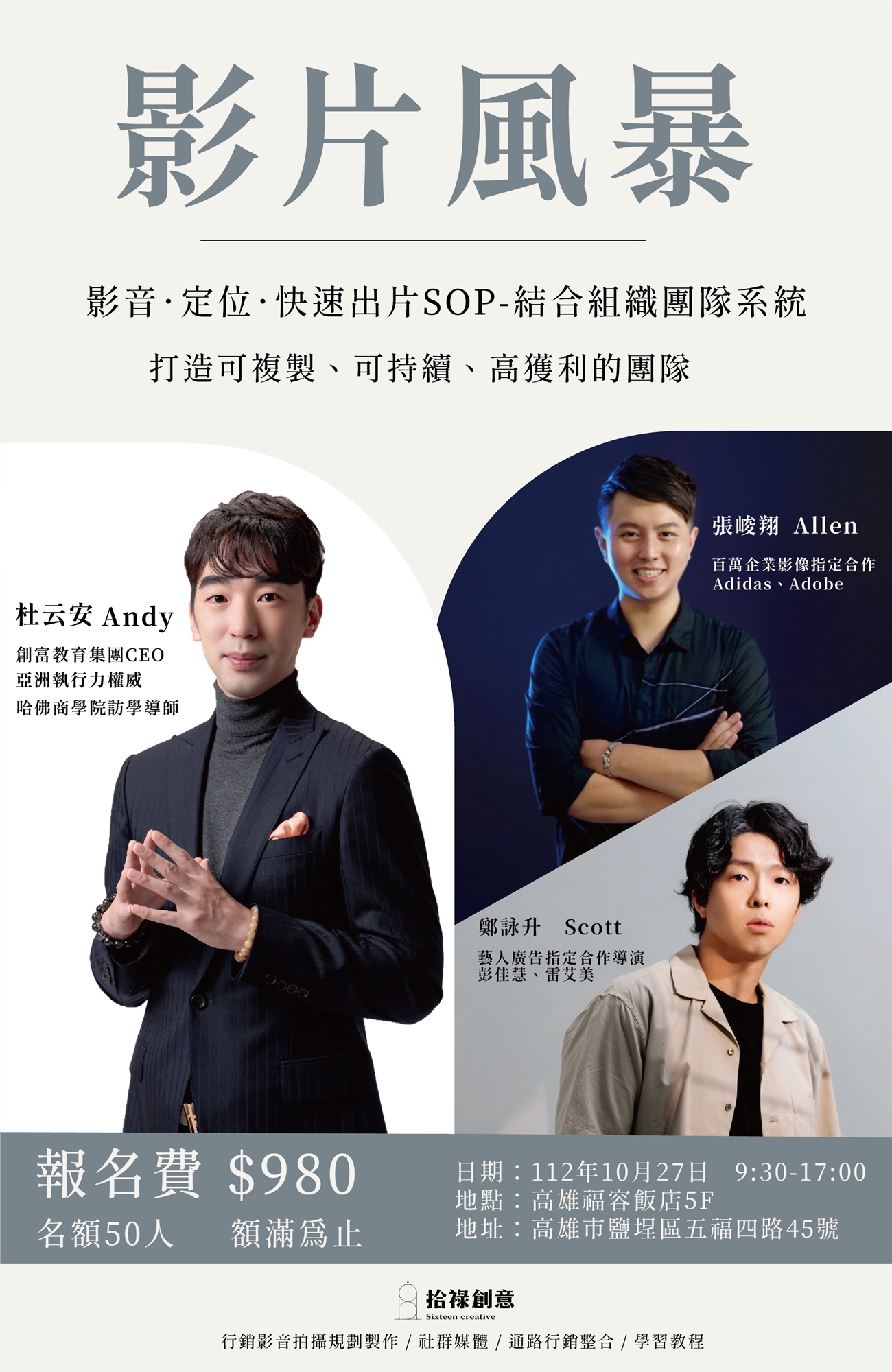 我們將分享如何Sop化將影片快速產出,提高知名度和吸引力。