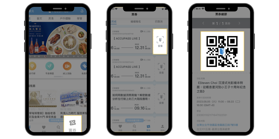 步驟2-在「票券」頁面中,點選「查看」,即可截取票券QRcode畫面。