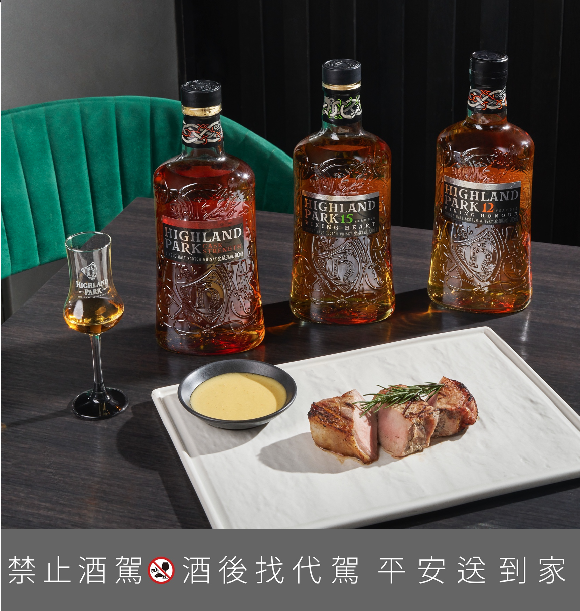 Highland Park高原騎士來自蘇格蘭奧克尼群島,擁有「世界烈酒之最」美稱,高原騎士–高年份威士忌煙燻雪莉傳奇,領略高原騎士極致繁複的釀酒工藝,搭配由「WILDWOOD」餐廳米其林主廚林明健的直火料理,開創高原騎士「野出新風味」嶄新味覺饗宴。