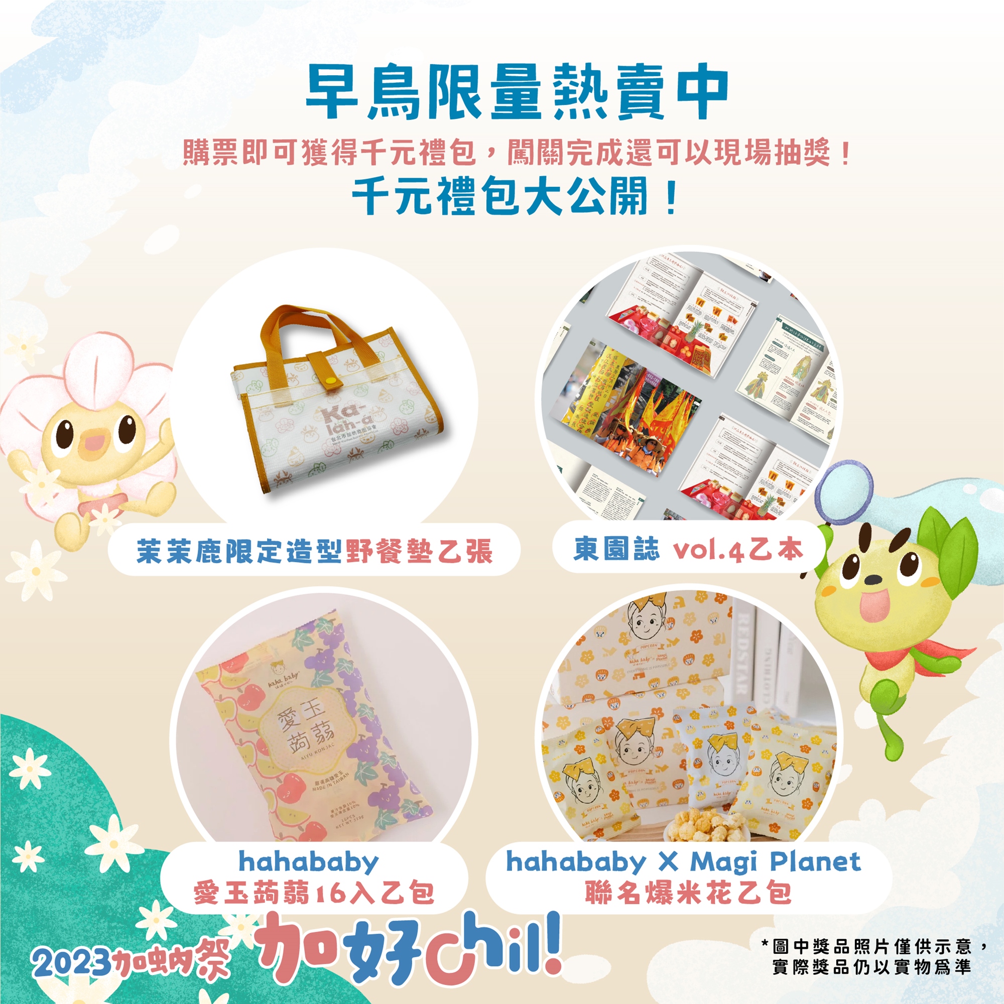 」,僅提供活動行前通知寄送之用,當天無法憑此票卷兌換任何付費活動之門票或是任何活動之優先候補權,也無法憑此票卷向店家要求更多之商品優惠折扣。 - 活動若遇雨,若無颱風警報、豪大雨特報等警示,則活動照常舉行,雨具請自行準備喔!