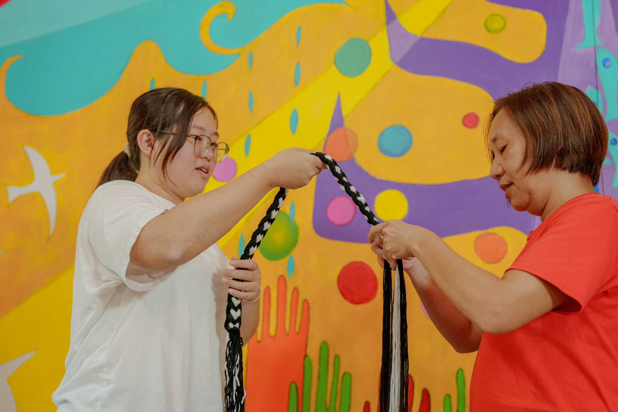 將傳統文化祭儀中配戴的情人袋,轉化為平日也可以搭配服飾的多變樣式,並搭配多股編繩配戴。聽情人袋的文化意義、了解文創的過程,兩人或三人合力製作編繩。這不只是手作體驗,更在過程裡互動、交流,隨著繩股的拉扯、交織,關係也慢慢纏繞一起而有了改變。