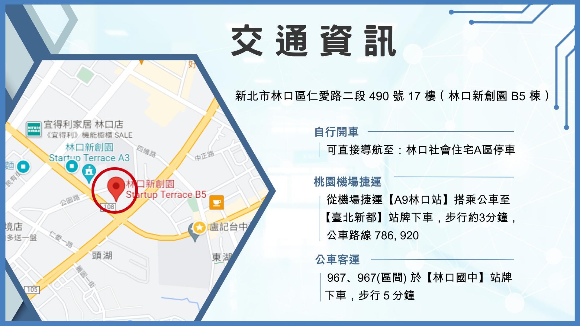 🎯地點:新北市林口區仁愛路二段 490 號 17 樓(林口新創園 B5 棟 17 樓)