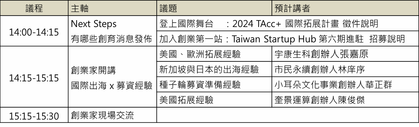 聯絡窗口:Taiwan Startup Hub 新創基地 306@careernet.org.tw