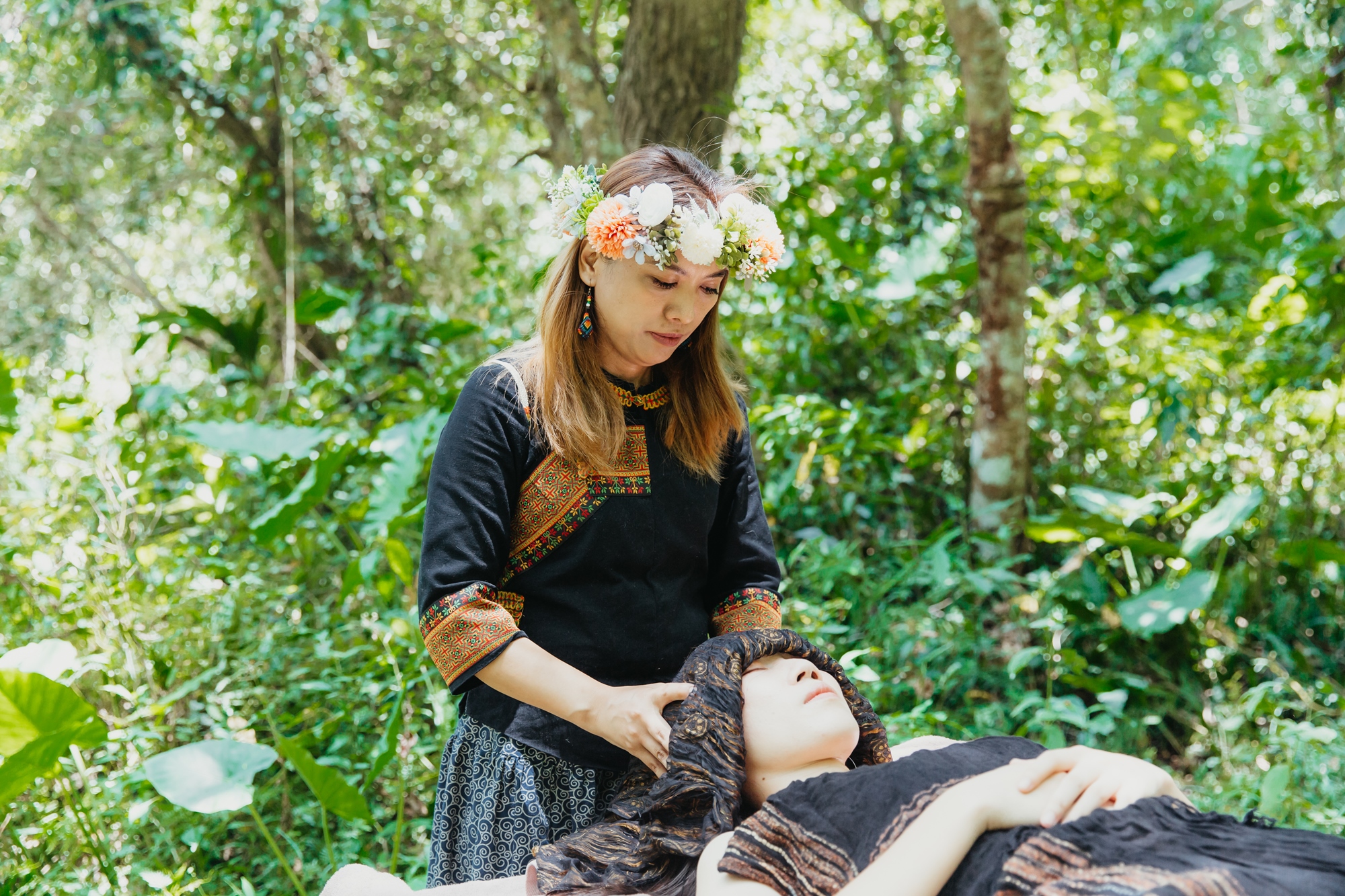 在被藥草薰蒸的過程中,我們還能學習簡單按摩的技巧,放鬆頭部、肩頸與手、腳。