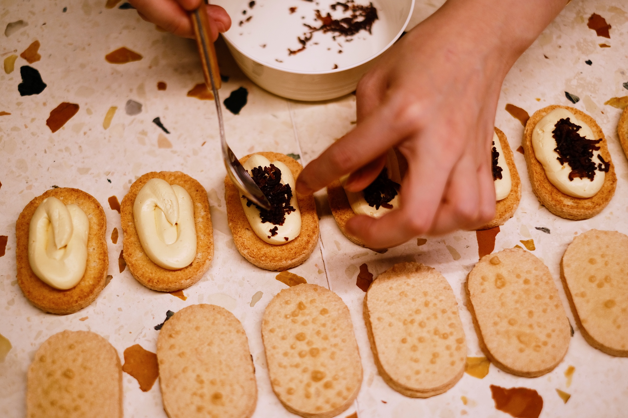 - 裝飾:達克瓦茲通常會被裝飾上水果、巧克力、果仁或糖霜來增加額外的颜色和口感。