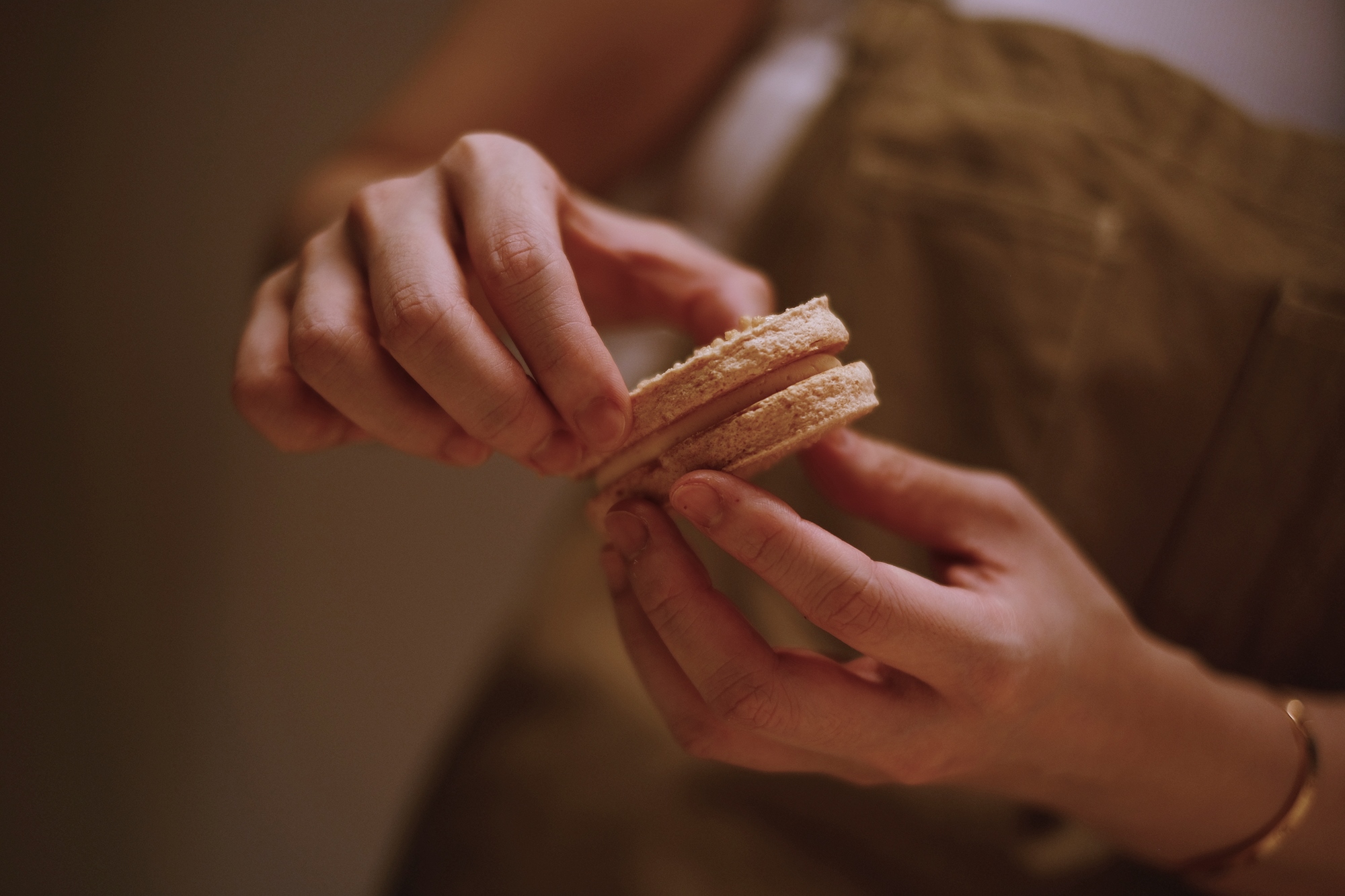 達克瓦茲外殼製作、糖粉使用技巧、脫模技巧講解、雙重口感內餡使用