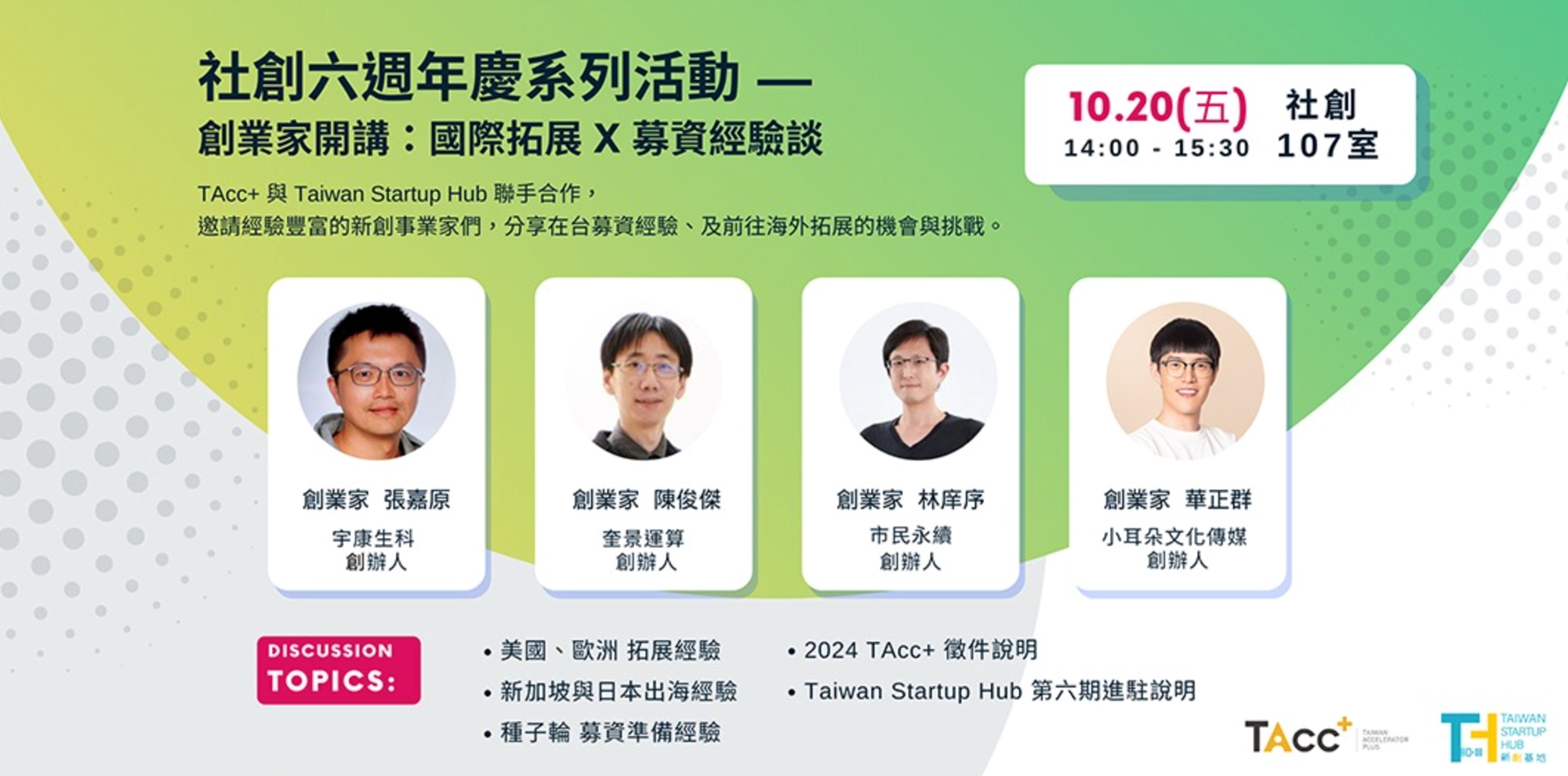 ▶國際拓展經驗分享會【創業家開講:國際出海 x 新創募資】