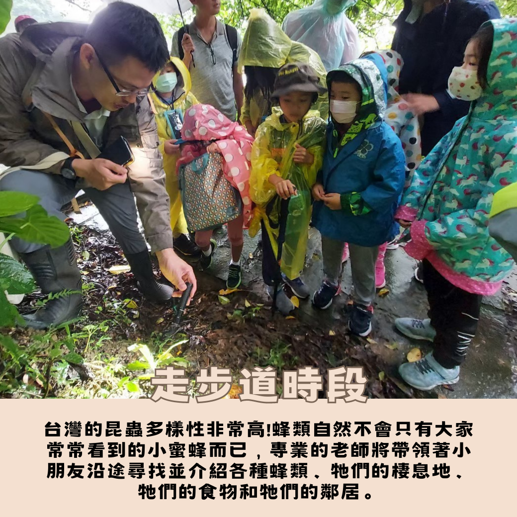 蟲蟲先生的科學教室將帶領小孩到南港茶山的野外環境尋找各種蜂類,認識蜂類的生態知識,實作課程方面,將透過動手組裝一隻會嗡嗡叫的仿生蜜蜂,訓練孩子的工程組裝執行能力,並深入認識蜜蜂溝通能力背後的科學,從生態到科技,完整跨領域學習之旅就在蟲蟲先生的科學教室哦!