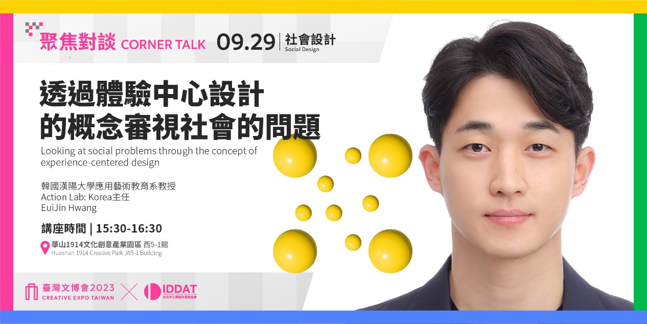 人們生活中存在著各種各樣的社會問題,而這些社會問題隨著我們生活方式和科技進步的改變而不斷演變。解決這些複雜多樣的社會問題對我們作為社會成員來說是一個非常重要的課題。本次分享將介紹體驗中心設計的概念,作為一種理解和解決社會問題的方法。接著將介紹EuiJin教授目前參與的一個項目,展示作為一名設計師,要如何應用體驗中心設計的概念來定義問題,並發現有意義的價值。