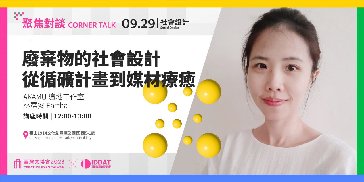 From the contemporary perspective of ceramic-based design, AKAMU Studio enters the sustainable path of mineral regeneration, transforming materials into a healing service experience.Through strong partnerships, the Upcycling Project is constructed, turning waste into sustainable mines. Beginning with material design, and employing objects, experimentation, and social intervention, it aims to influence our environmental and human relationship systems.With a human-centered approach, designer Eartha from AKAMU Studio will share how, through the metamorphic process of rebirth, an ideal social prescription can be found through iterative practical experience and observation, paving the way for sustainable development.