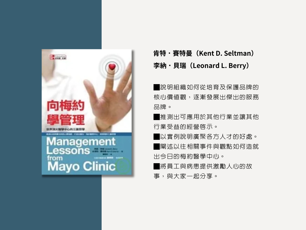 第5本分享書【向梅約學管理:世界頂尖醫學中心的三贏哲學】