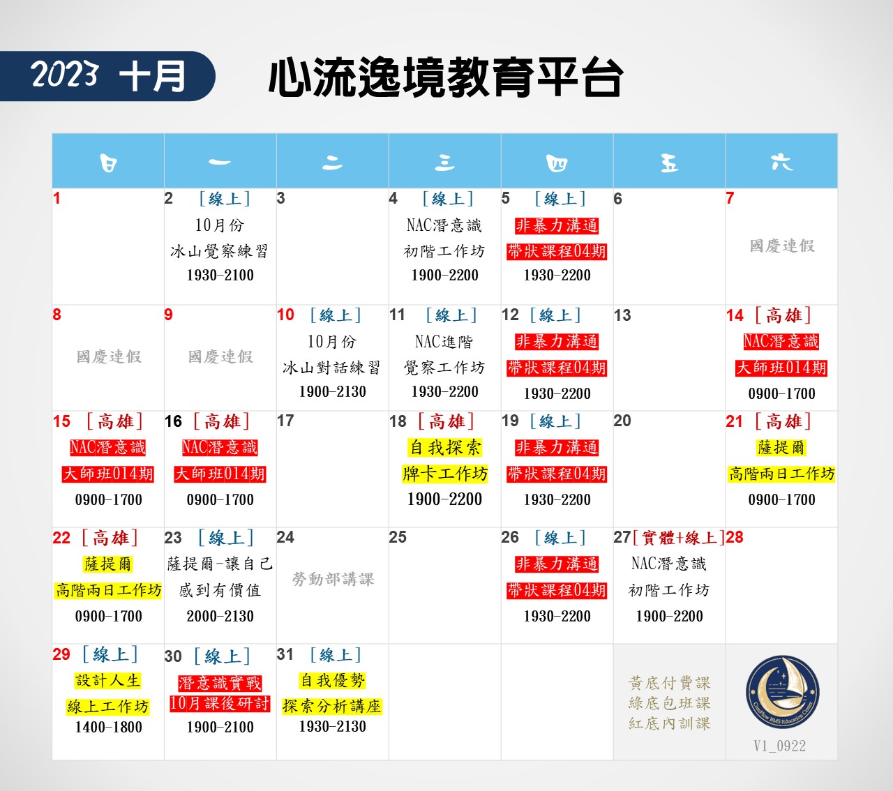 ❤心流逸境教育平台-十月份課程表❤