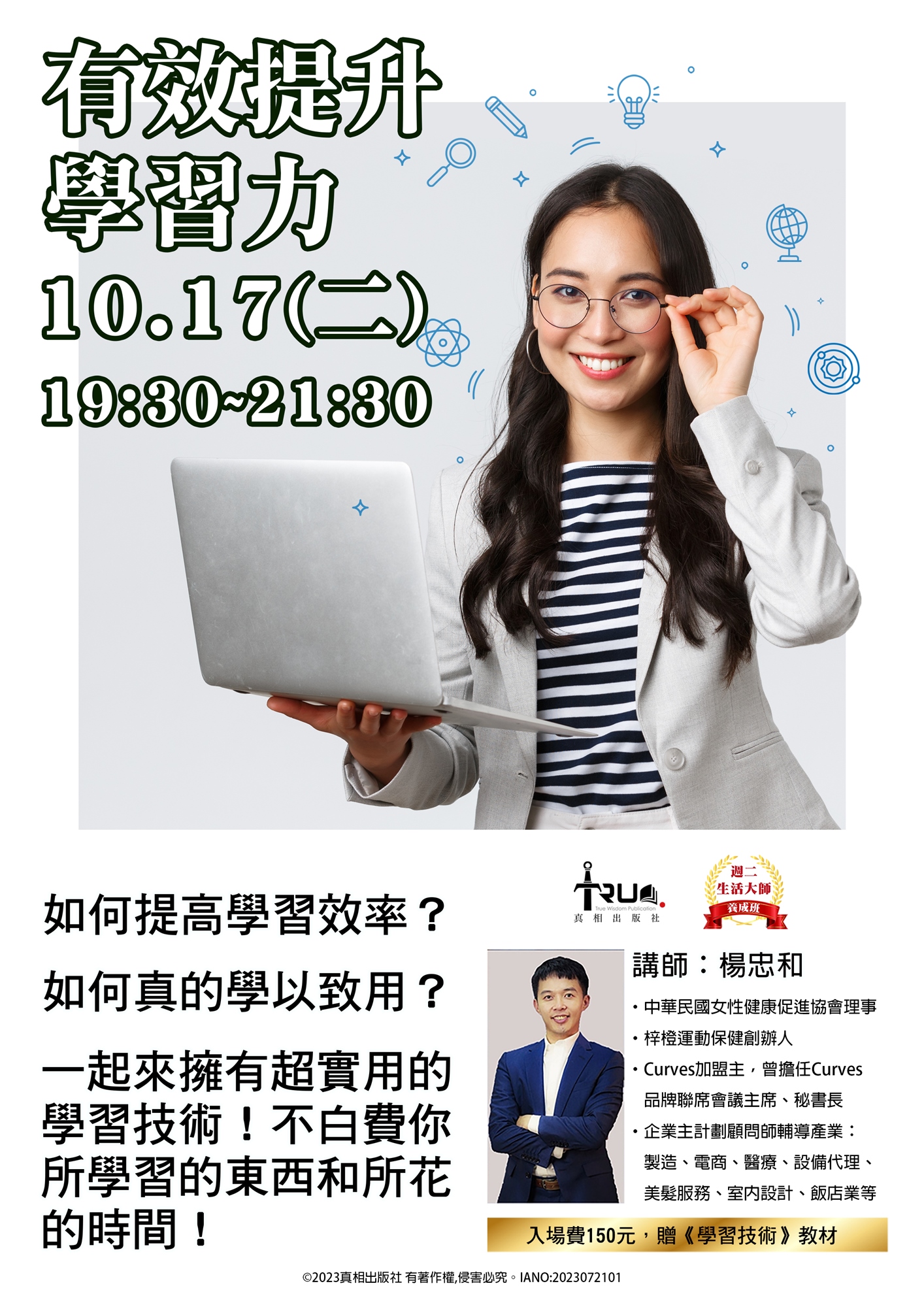 💖成功人士必備的高效學習法! 本講座將教給你一套顛覆性的高效的學習方法,彌補學校未教給你的跨領域學習能力,助你朝向成功人生!