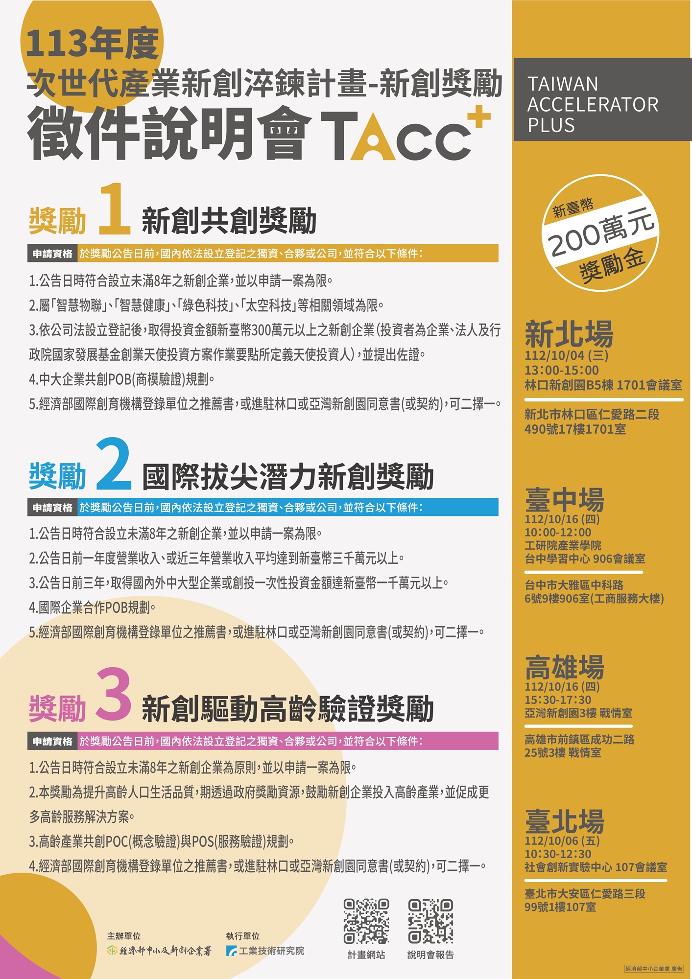 經濟部中小及新創企業署為有效孕育、扶植與輔導臺灣新創企業,推動「次世代產業新創淬鍊計畫」新創獎勵。