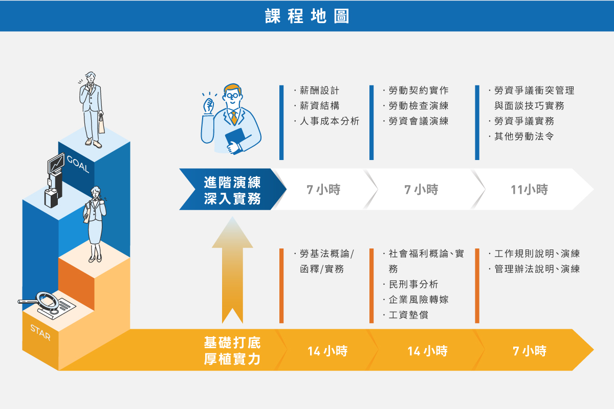 ■ 基礎打底(35H):扎實穩健的基礎理論,建構勞動法務知識基底。