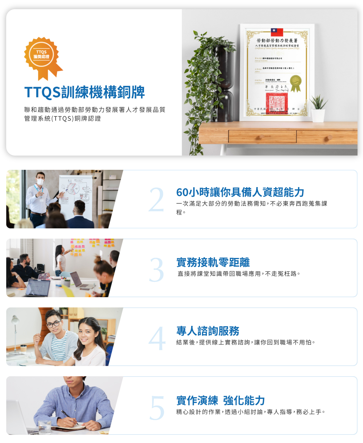 聯和趨動股份有限公司 通過勞動部勞動力發展署人才發展品質管理系統(TTQS)銅牌認證,辦訓品質有保證。