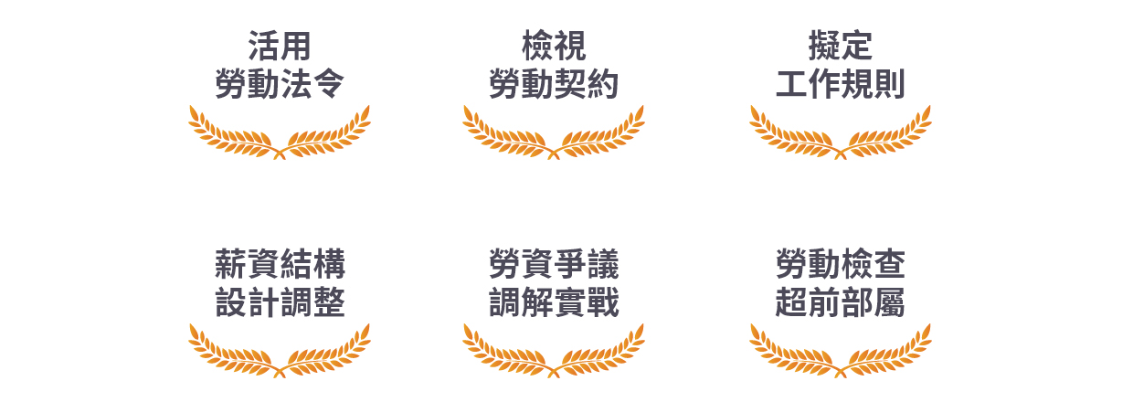 薪資結構設計、績效考核制度建議,協助勞動檢查、勞資爭議調解,規劃企業資產傳承。