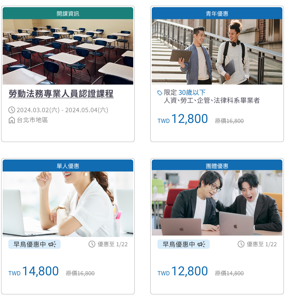 [青年優惠] 限定30歲以下,人資、勞工、企管、法律科系畢業者,報名即享有青年優惠價12,800元,名額有限,快來報名~