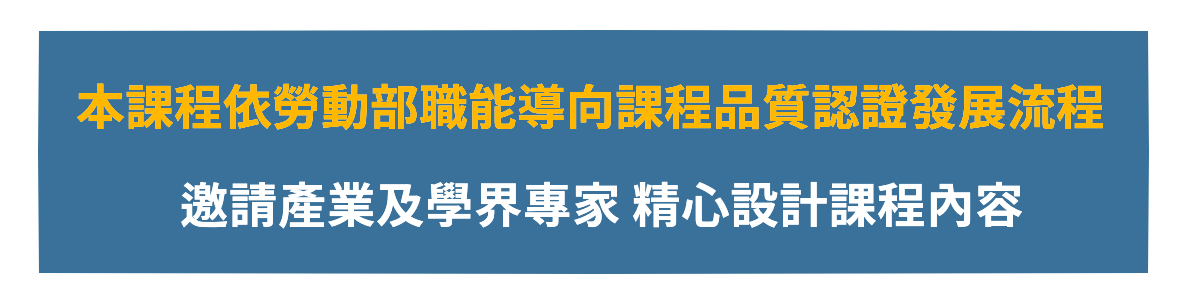 • 勞動部勞動力發展署「職能分析職能導向課程」認證