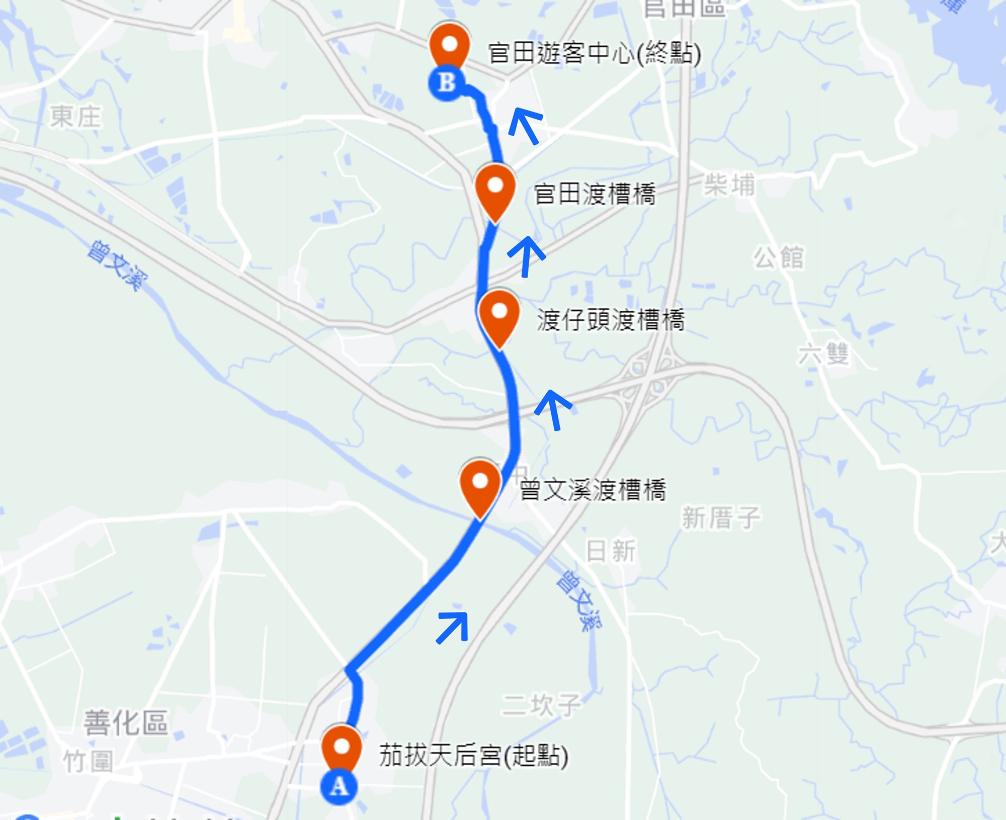*注意:選擇「茄拔天后宮」報到者於活動結束、抵達終點(官田遊客中心)後,不提供接駁車載回起點之服務。