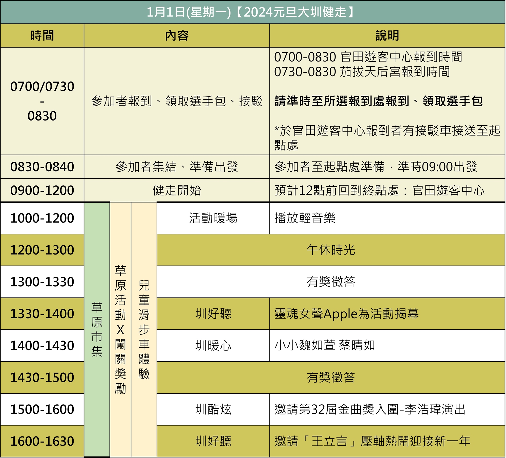 *注意1:於官田遊客中心報到者提供接駁車接送至起點處,因座位有限僅供參加者搭乘,請參加者憑選手包內的「參加者布條」搭乘,謝謝。