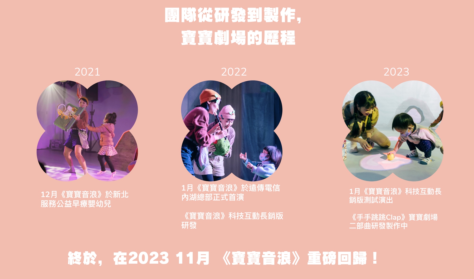 今年《寶寶音浪》之所以太強,全是帶著過去1221組親子家庭的實際參與與反饋,讓我們讓原本的劇目持續演出,同時我們正在發展寶寶劇場二部曲《手手跳跳Clap》,希望最快2024年能以定目劇的方式跟大家見面。