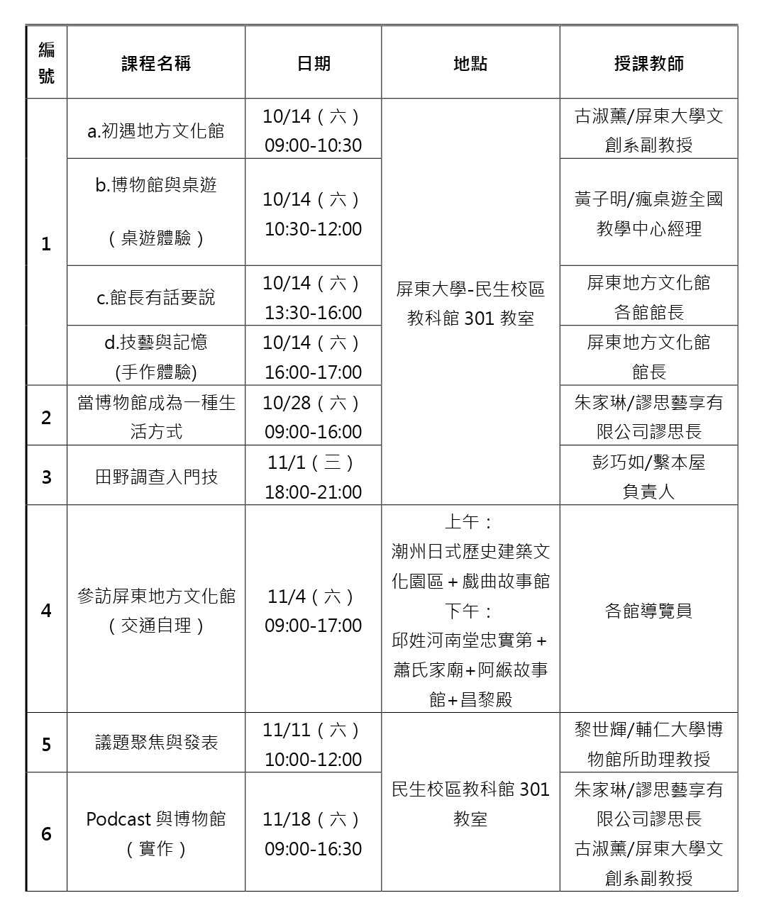 課程最後一天(11/18),由小組共同錄製並發表屏東地方文化館的podcast,並且有機會上架於《老派博粉的謬思藝享》podcast節目。