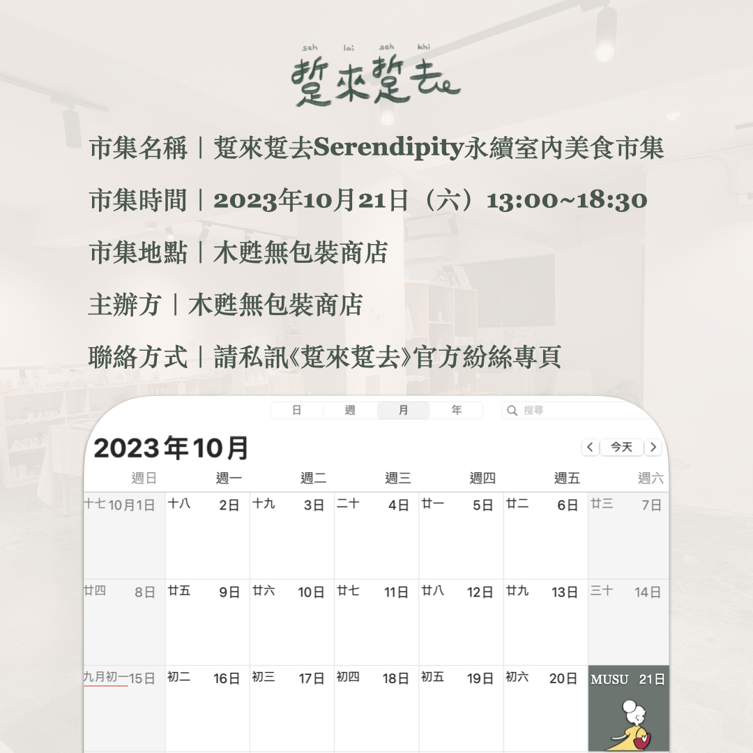 市集時間|2023年10月21日(六)13:30~19:00