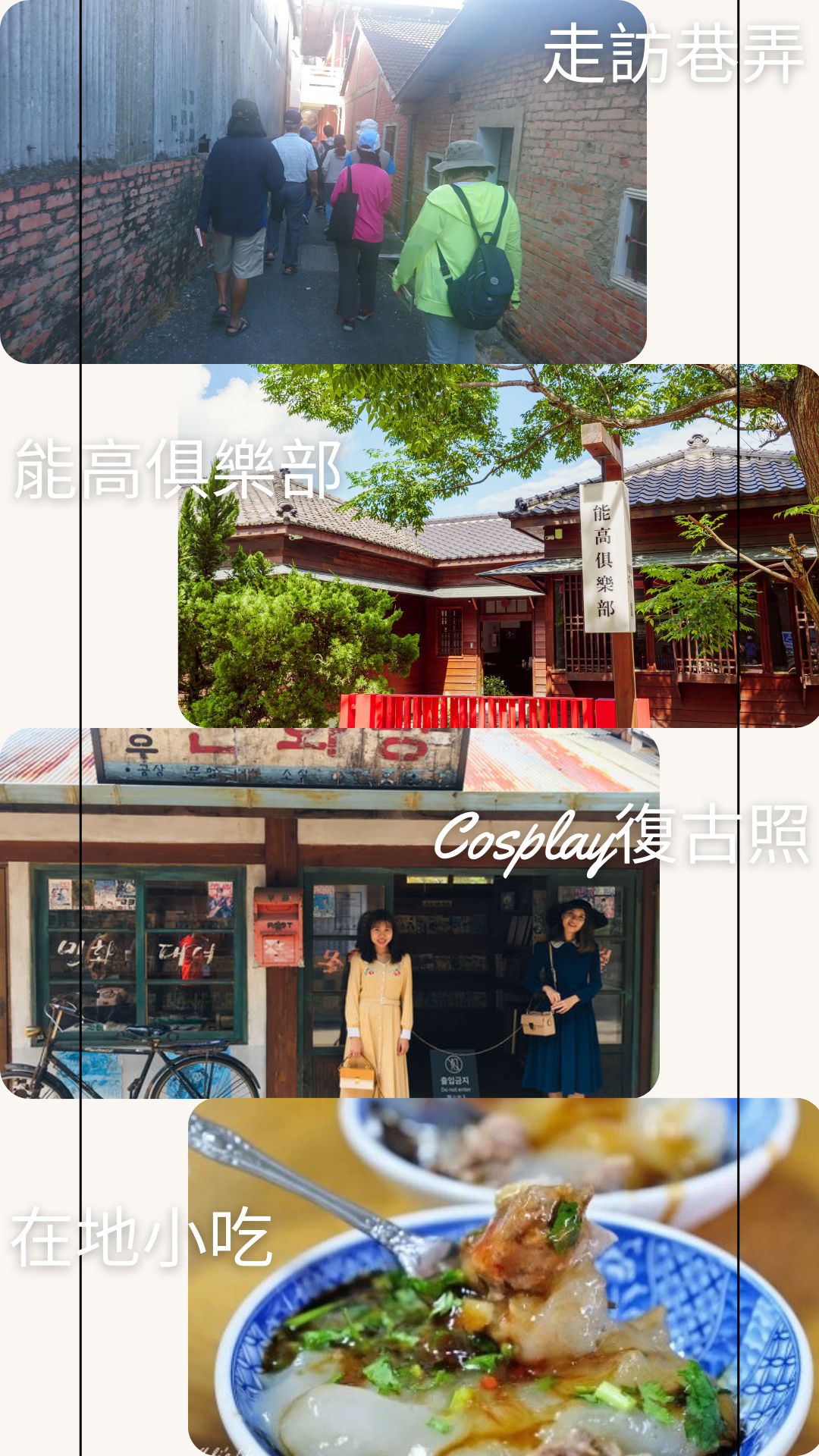 13:30-15:40 | 實地探索 | 解說員帶領走訪巷弄、cosplay復古照、品嚐在地小吃 |