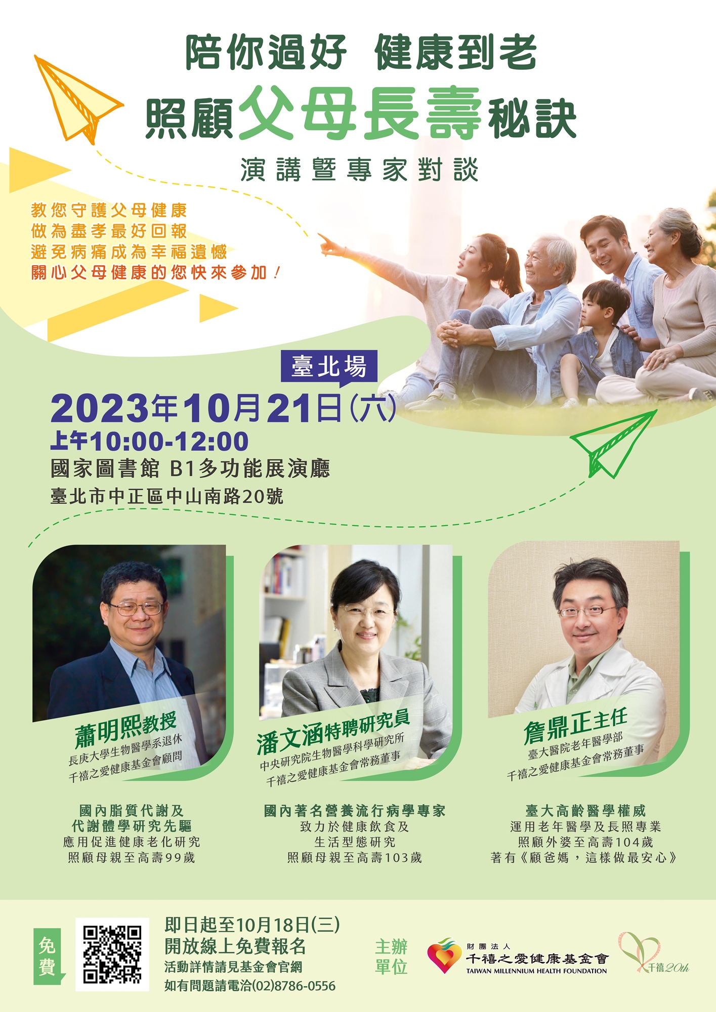 這場講座獻給身為父母陪伴者以及想健康長壽的您,一起陪彼此過好,快把握難得機會來報名!
