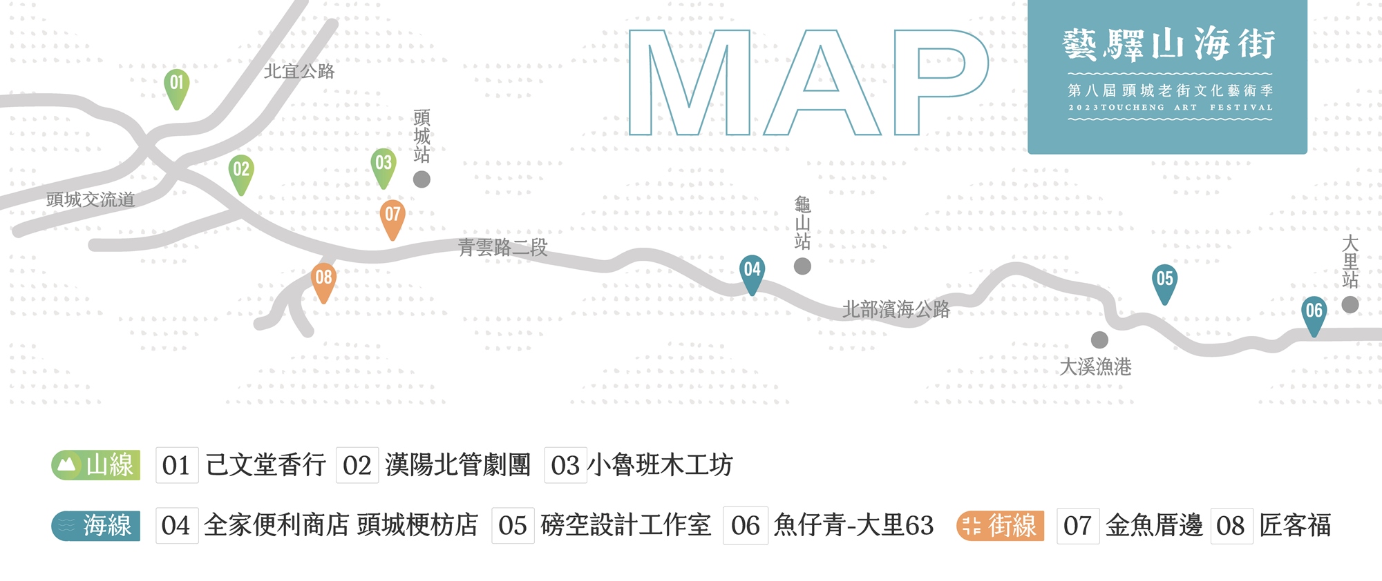 協辦單位 ▏教育部青年發展署、東北角及宜蘭海岸國家風景區管理處、頭城鎮公所、頭城慶元宮、星濱山共創工作室、天賜糧源、鹿港囝仔文化事業、東吳大學商學院、東吳大學企業創新育成中心、蘭陽城鄉美學基金會、台灣ESG旅遊推廣協會、己文堂香行 、磅空設計工作室、喜洋洋自助餐、漢陽北管劇團、康懷工作坊、 德安堂中藥房、李榮春文學推廣協會