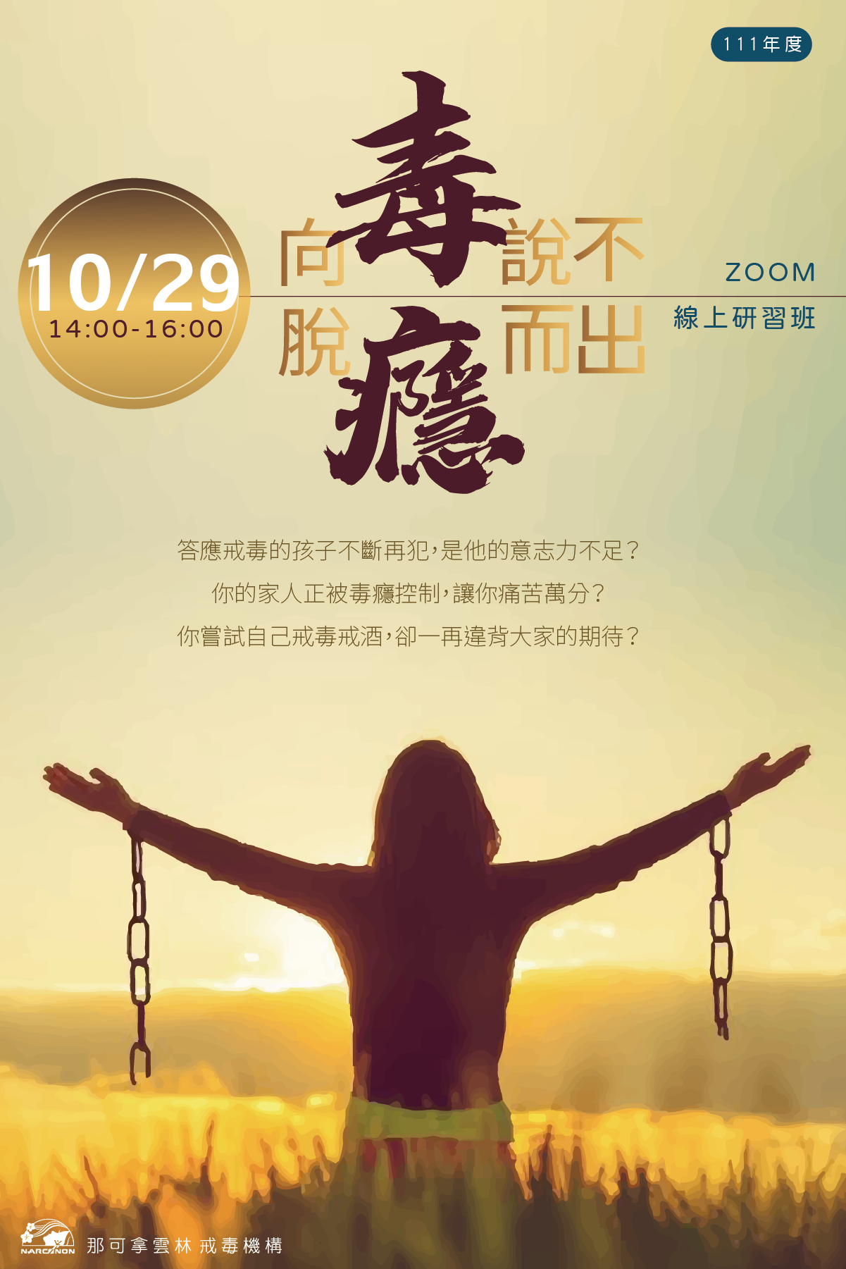 主題:10/29 向毒說不 脫癮而出-成癮者家屬暨志工成長研習班