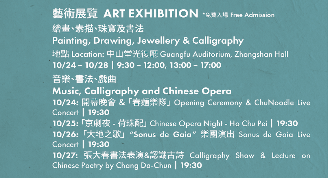 10/24: 開幕晚會 & 「春麵樂隊」演出Opening Ceremony & ChuNoodle Live