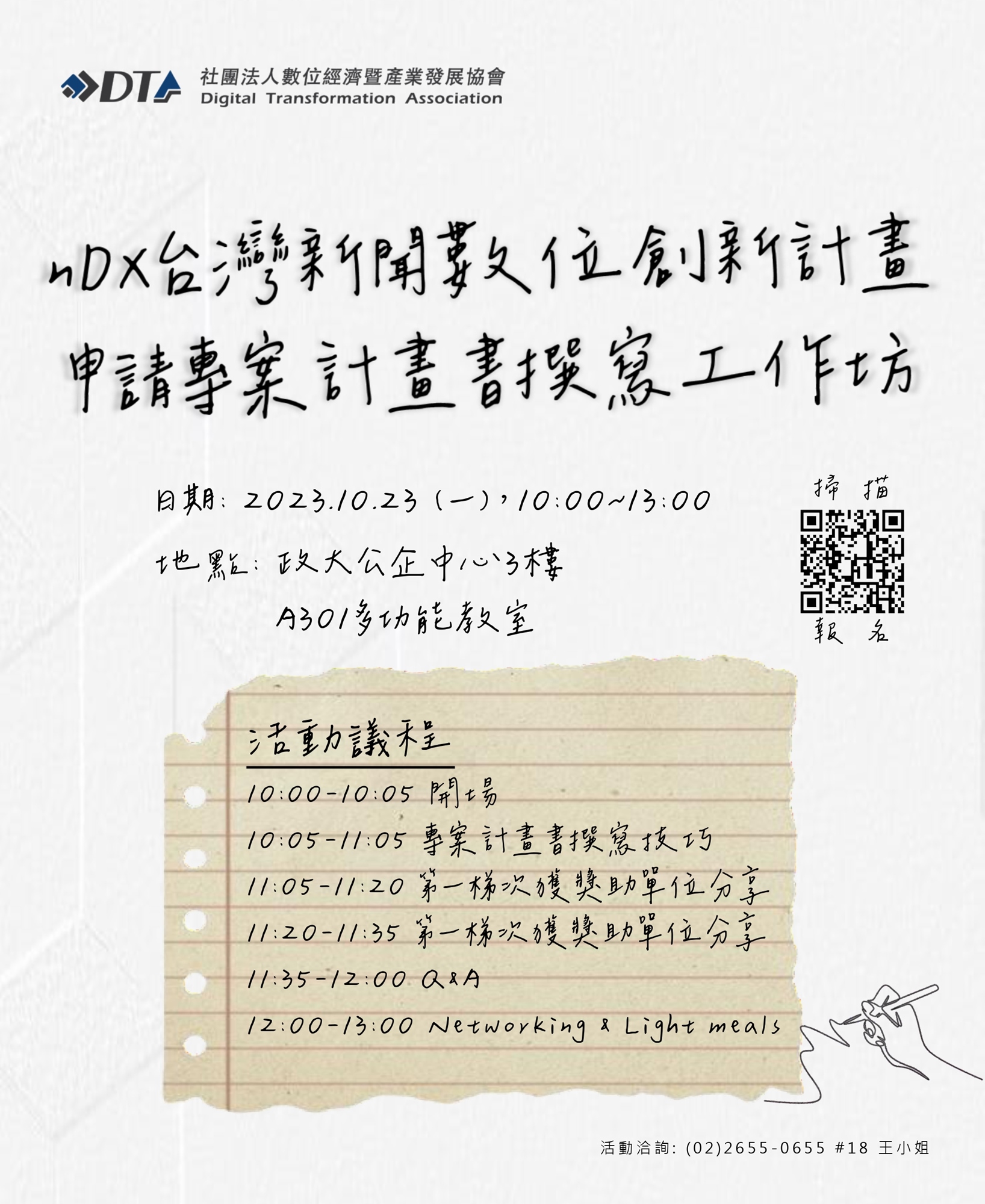 - 若對於本場說明會有任何問題,歡迎來信contact@dta.tw或是來電(02)2655-0655詢問。