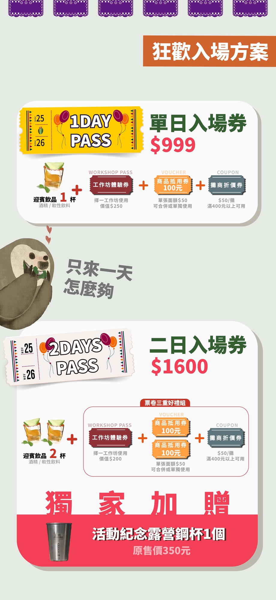 - 本活動一經購票,若非因不可抗力因素之個人原因而不克參加者,不提供退/換票。但歡迎將票券贈與朋友使用。