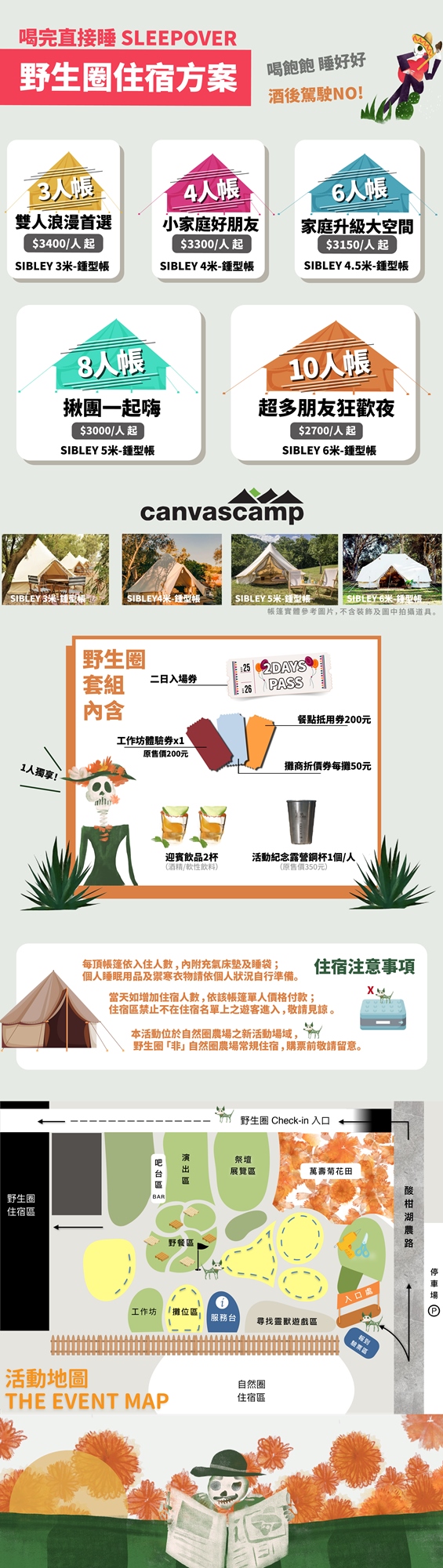 - 本活動有酒精販售,未達法定年齡請勿飲酒,活動內購買酒精飲品請攜帶含年齡標示之身份證件;並請理性適量飲酒,謹遵喝酒不開車原則。派對活動建議購買帳篷,以便喝醉立刻睡。