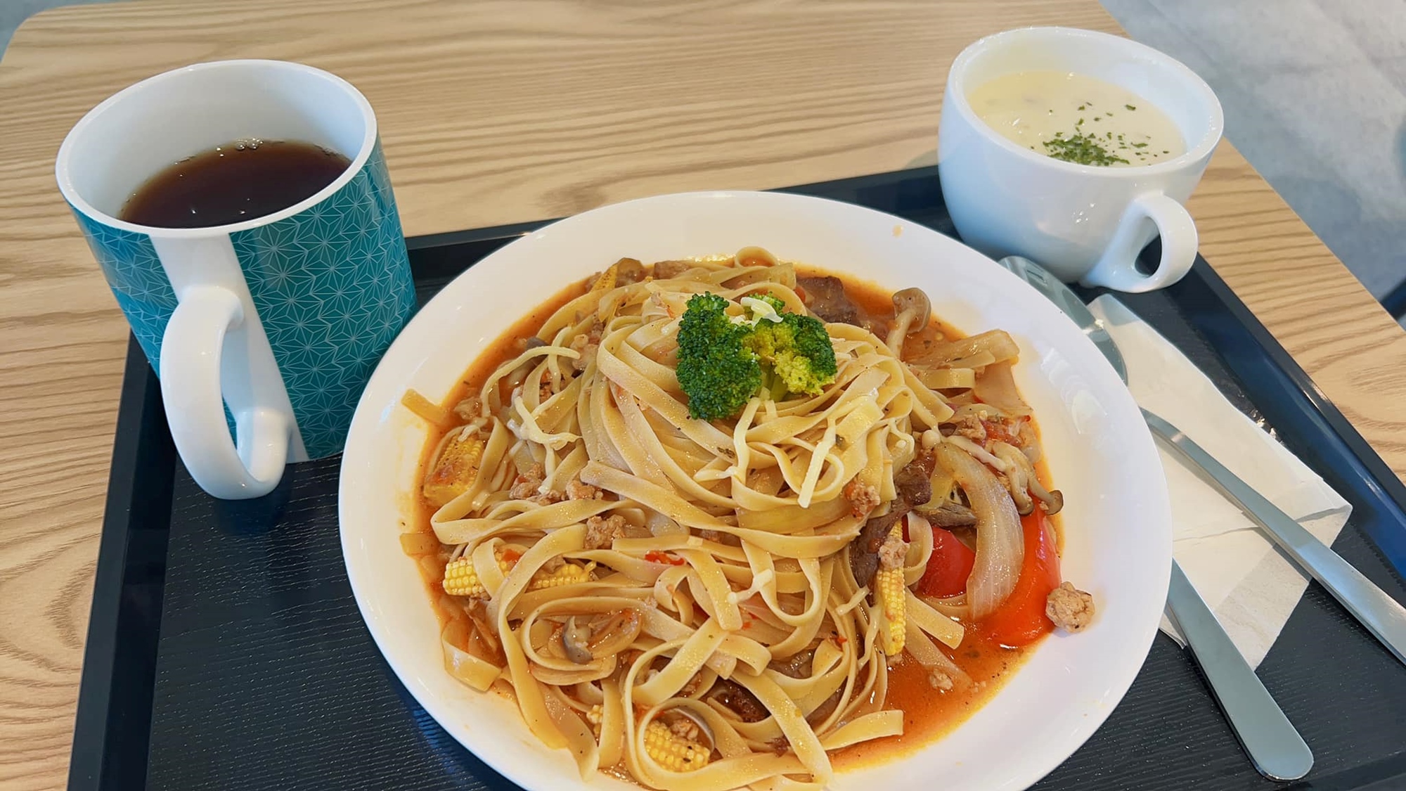 ( 手揉義大利麵+番茄肉醬+蘋果栗子濃湯)