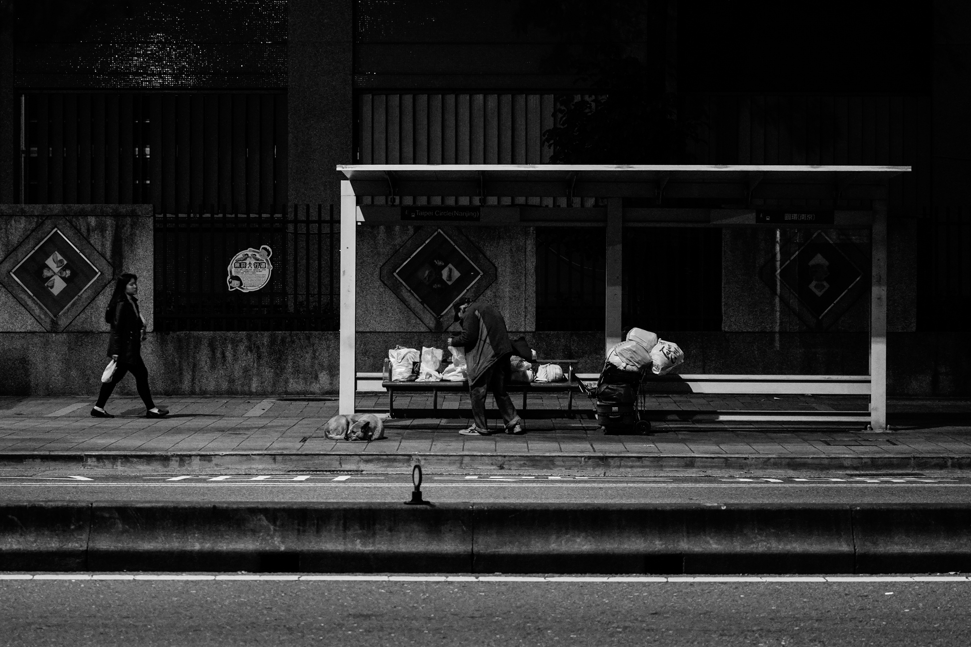晚上寄居在公車站牌的無家者/林璟瑋 攝