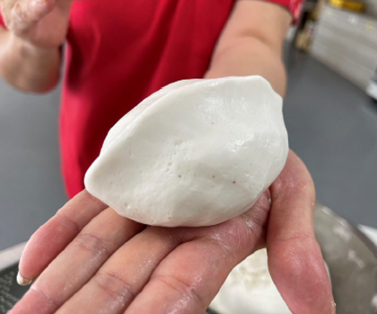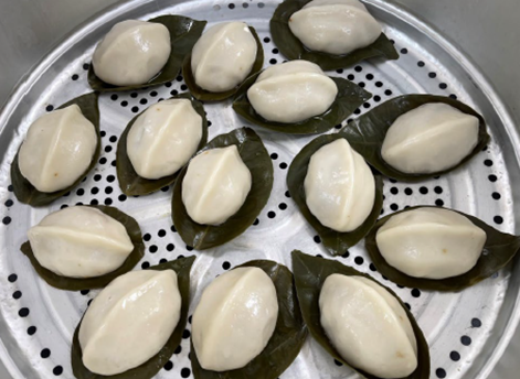 剛炊製完成,皮白、彈牙、餡料飽滿的客家菜包