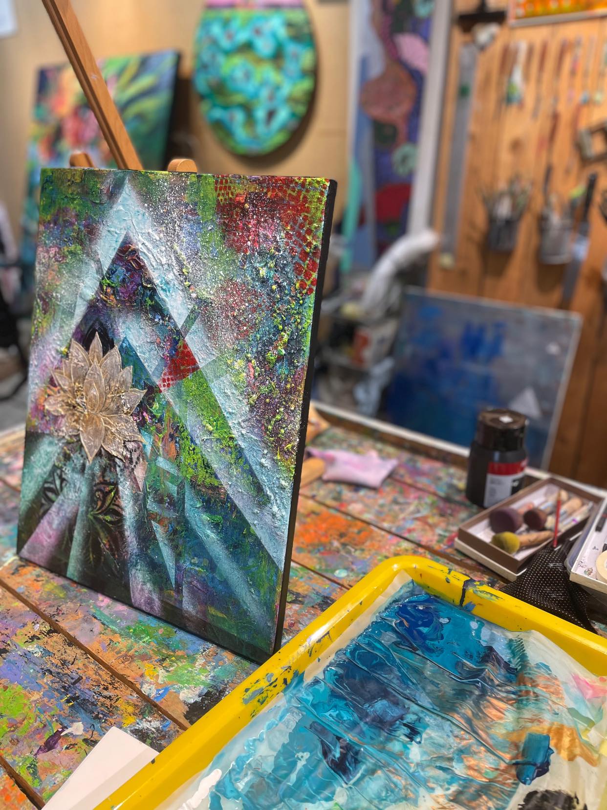 「宇宙系列」的創作是開始於2011年,一段山林冥想靜修後的紀錄,感受到人是身處於宇宙大自然中的微小個體,是個人對生命本質的探究及對生活周遭事物的體驗和反應,在繪畫過程中呈現空間和情境感為主的視覺語言,也是一種來自於個人實際經驗的反射,象徵或紓寫事情剛剛發生的一種心理狀態,並可將它擴散至一個全新的、寬廣的觀念領域,同時呈現出人類當下的精神性,能以不同的方式呈現。