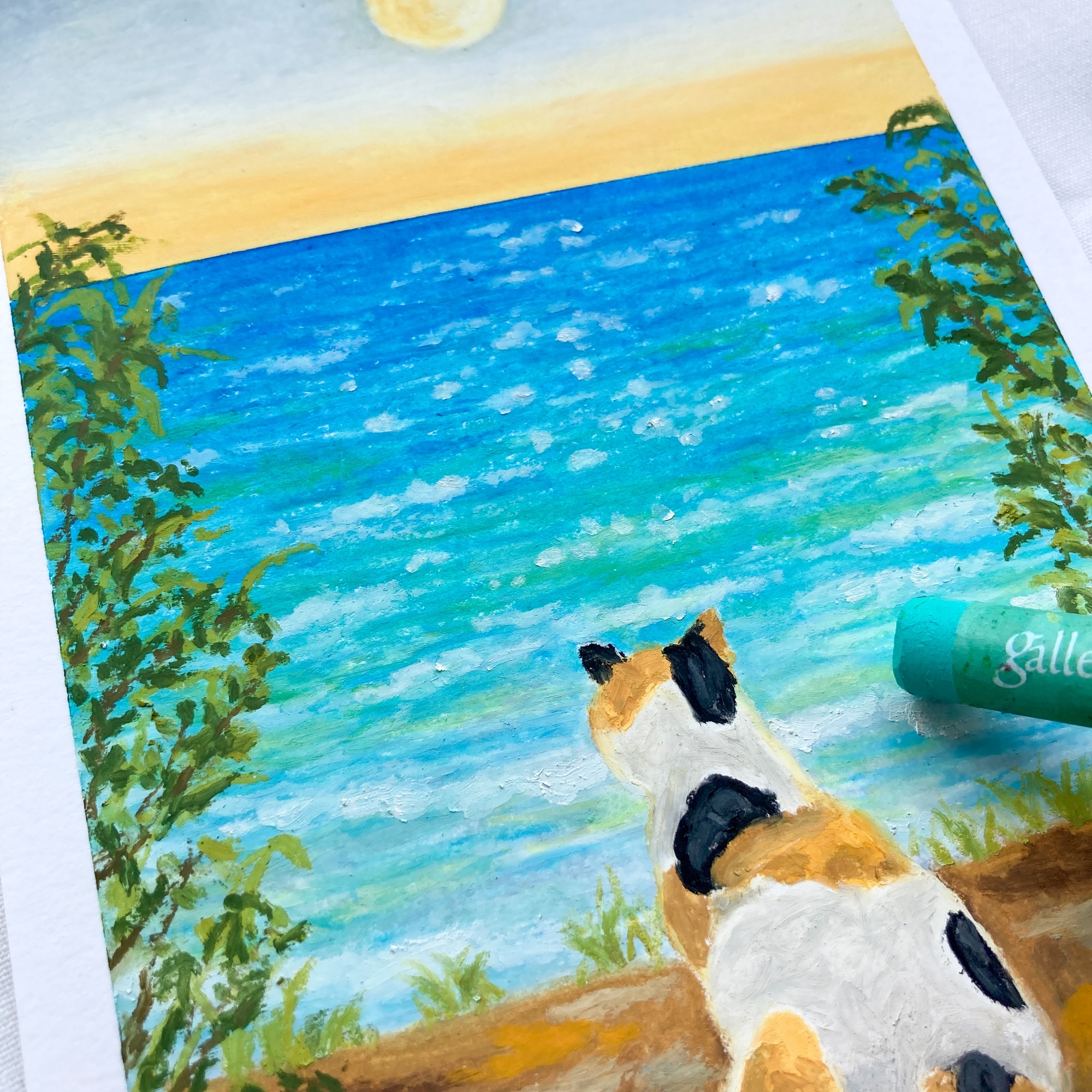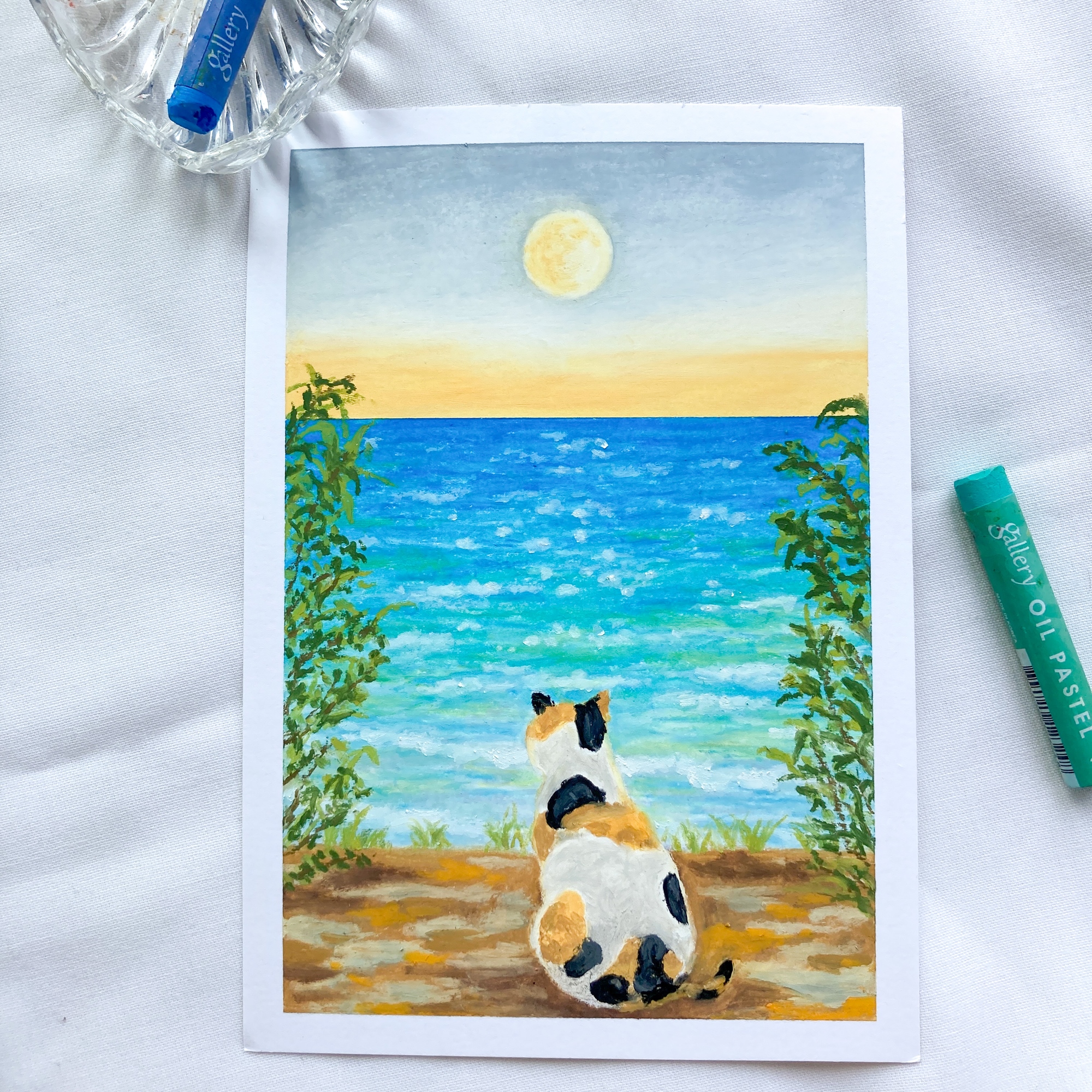 這堂課讓我們畫天空、畫海、畫貓,也可以替換成你自己的毛寶貝