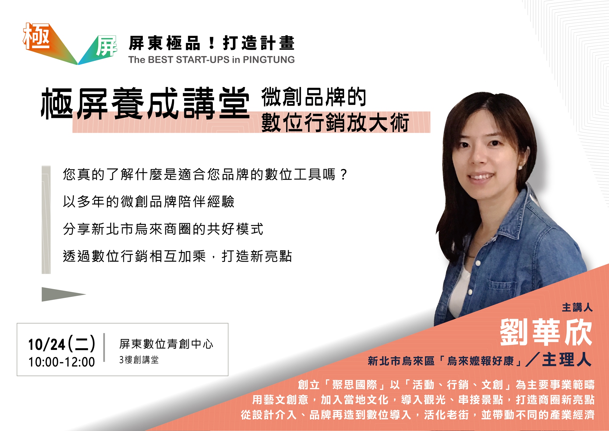 ➽ 地點:屏東數位青創中心 3樓創講堂(屏東縣屏東市中華路80-1號)