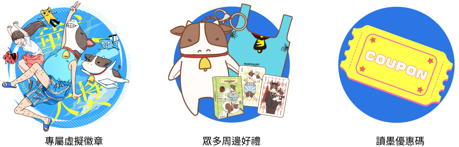 參加活動並完成任務,就有機會抽可愛的讀墨周邊好禮與專屬虛擬徽章~