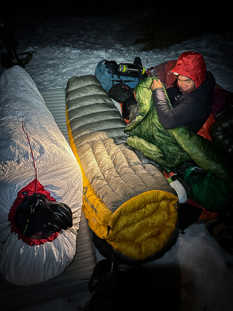 吳季帶上一組睡眠系統,就在日本到處亂睡了起來,甚至嘗試露宿在只有零下5~7度的赤岳山屋外。