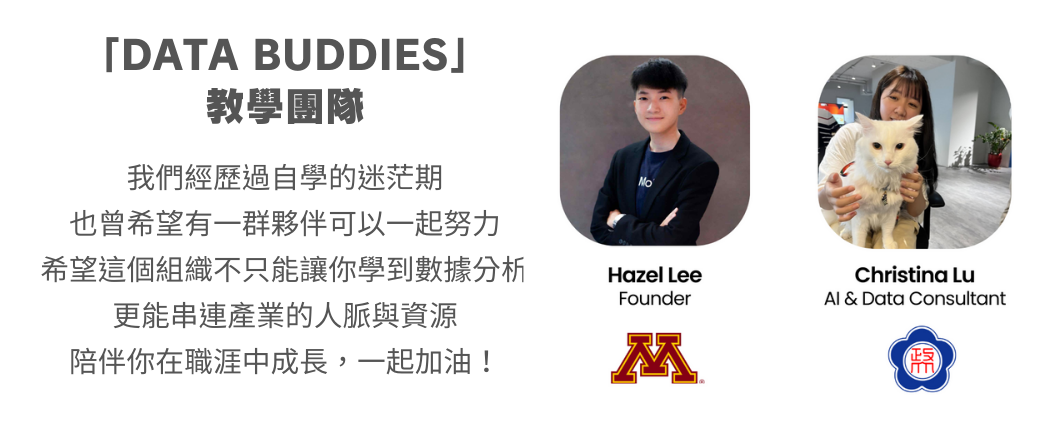 如有任何課程疑問,歡迎寄信到:databuddies.org@gmail.com