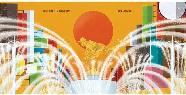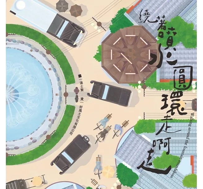 《繞著噴水圓環走啊走》由擅長發掘台灣故事的好風土文化與紀錄在地文化職人插畫家湯士賢共同演繹精彩文圖。