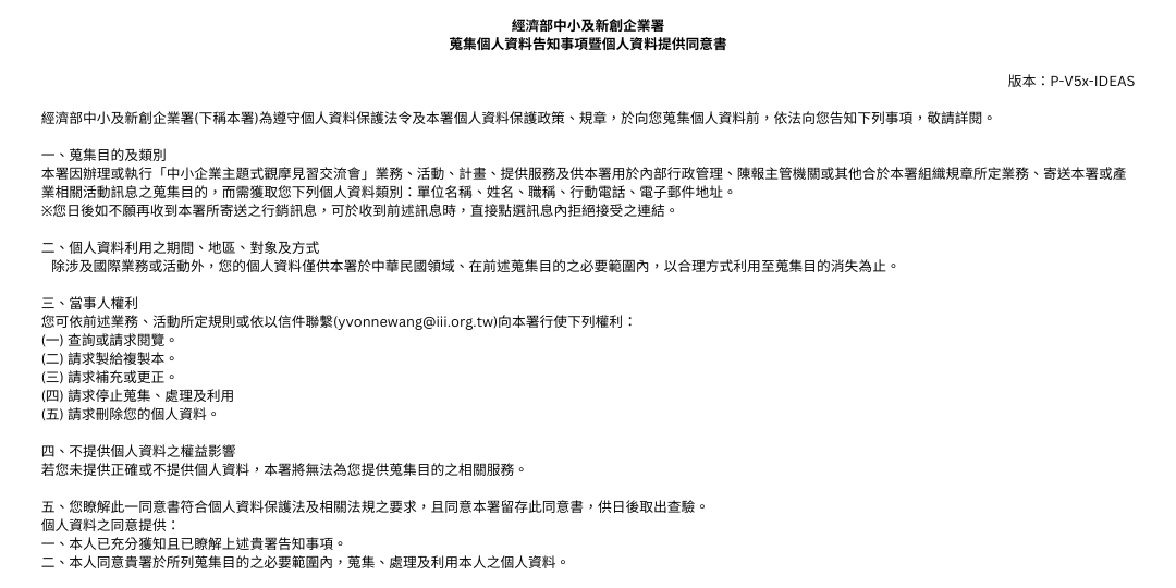 - 報名前請詳閱下方【個資同意書】之告知事項。