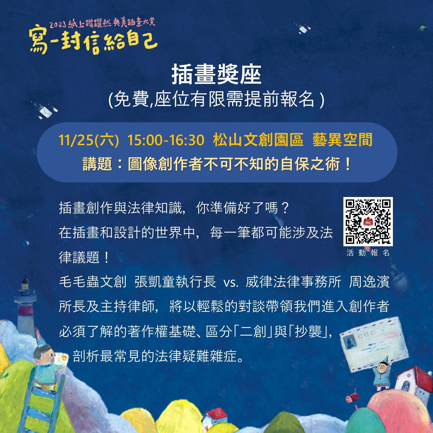 - 11/25(六) 15:00-16:30 圖像創作者不可不知的自保之術!