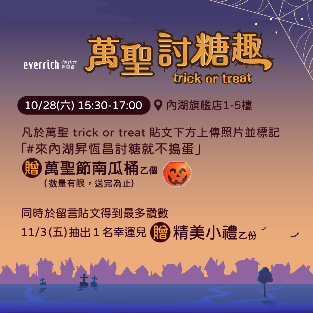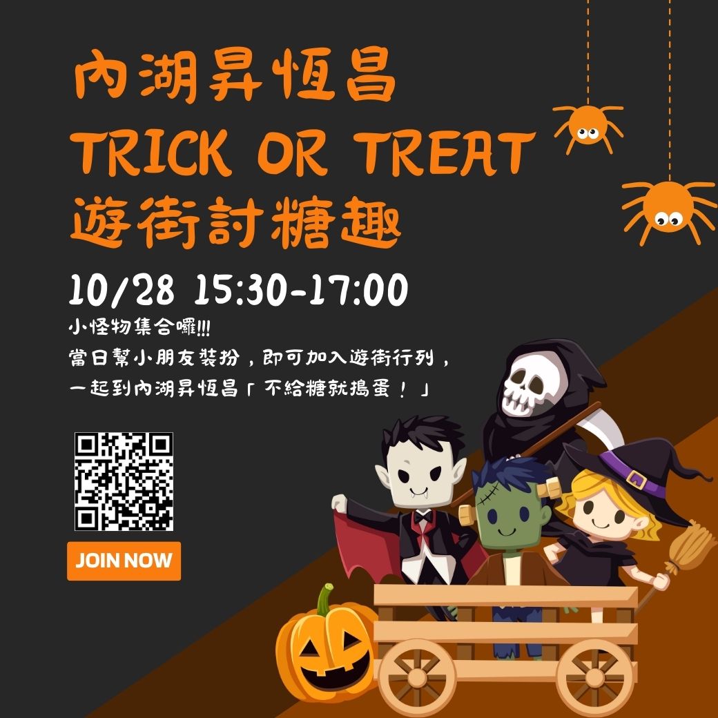 活動1-凡於現場於萬聖trick or treat-貼文下方上傳現場便裝照片並#來內湖昇恆昌討糖就不搗蛋,