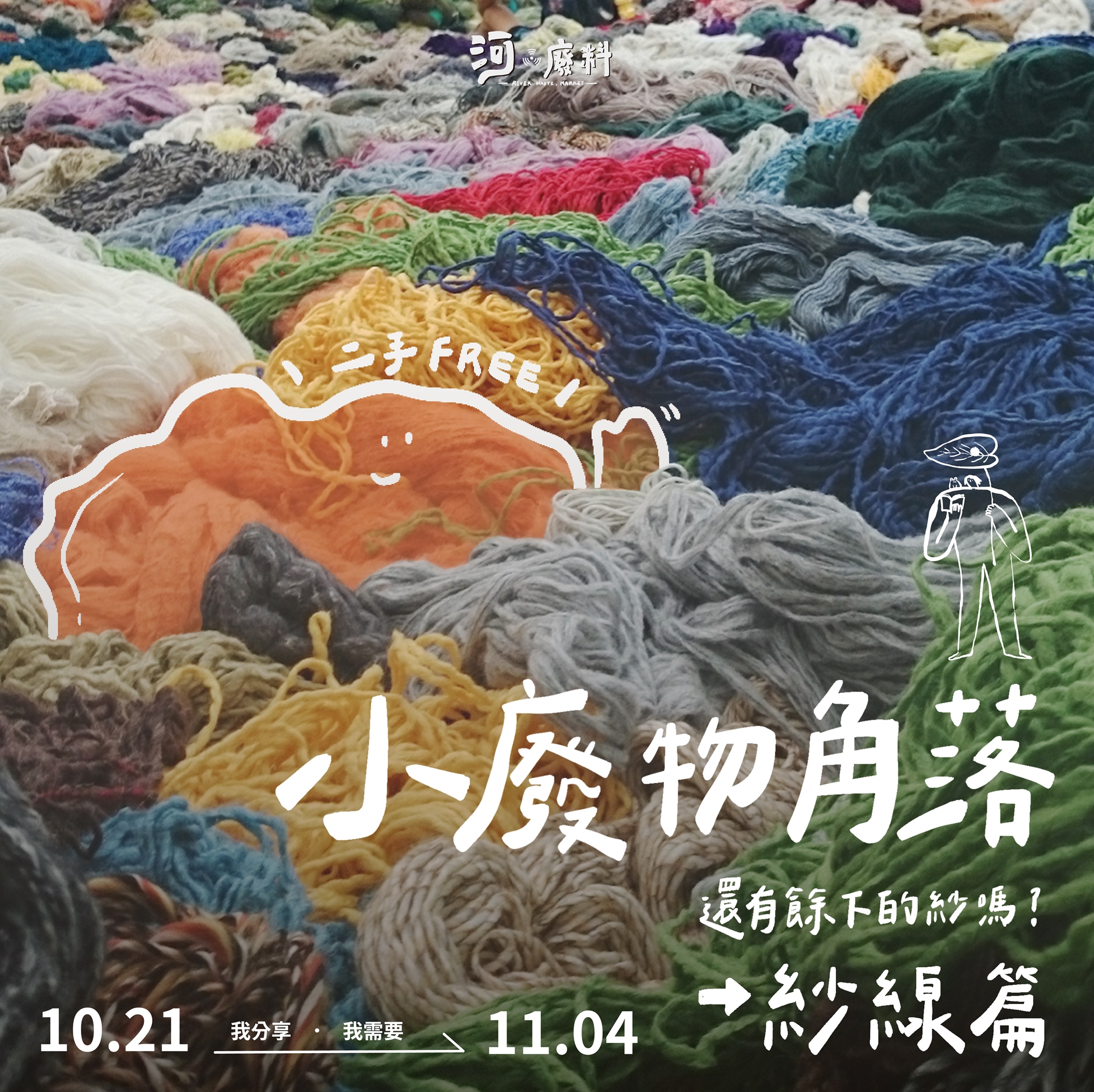○ 參與方式|10.21起至11.04歡迎帶來你用不到的紗線/編織/縫紉小廢物,或是免費取走你需要的材料小物喔!(請確保帶來的物品可利用,如有髒污請事先簡單清潔)